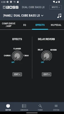Dedicated editor for controlling functions on the BOSS DUAL CUBE BASS LX Bass Amplifier.